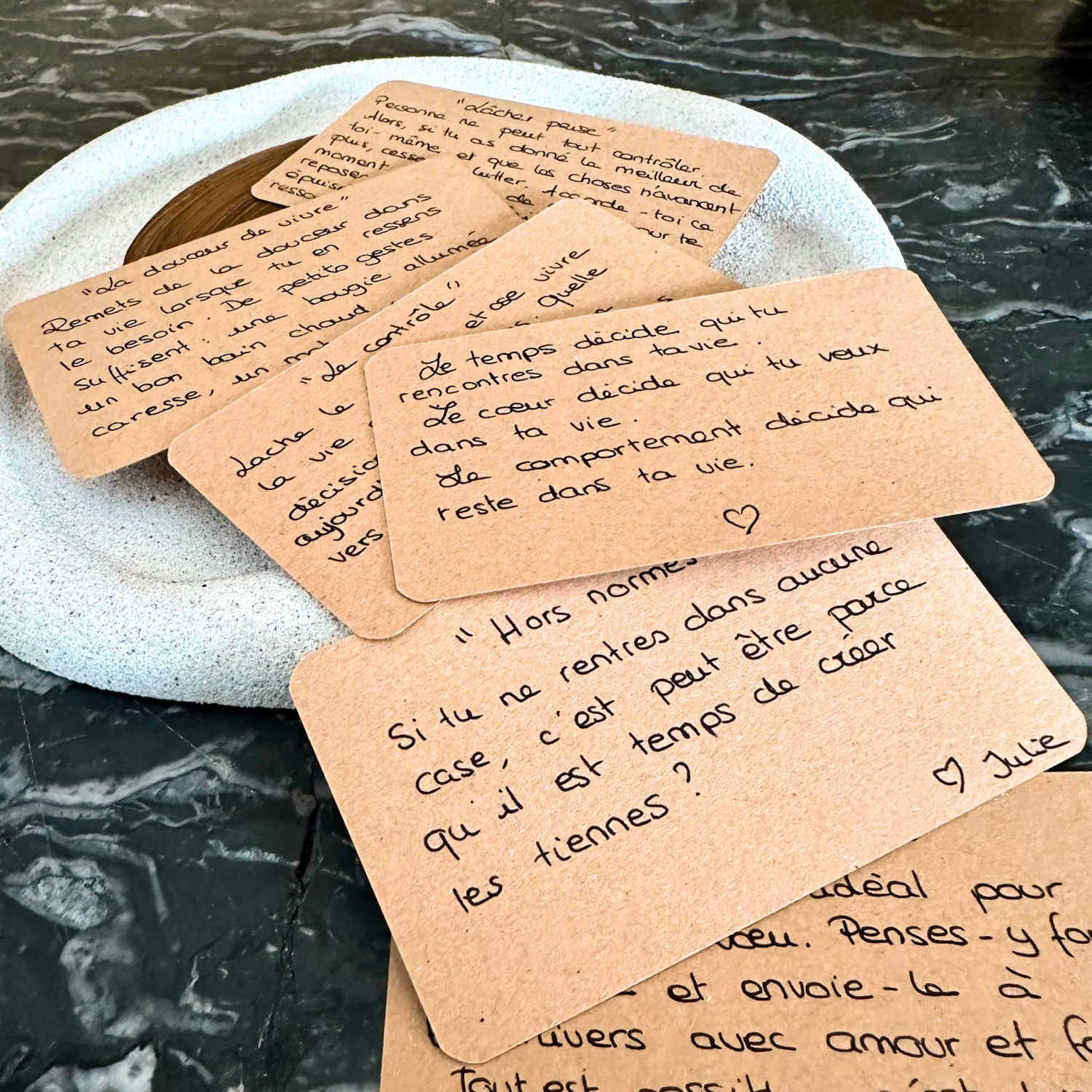 Chaque commande que tu passes est accompagnée d'un message personnalisé. Il peut s'agir d'une citation, un message intuitif, une carte d'oracle.